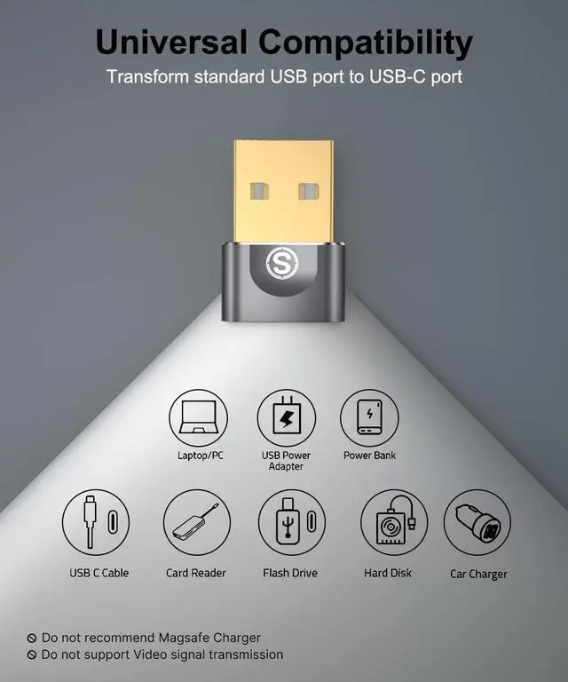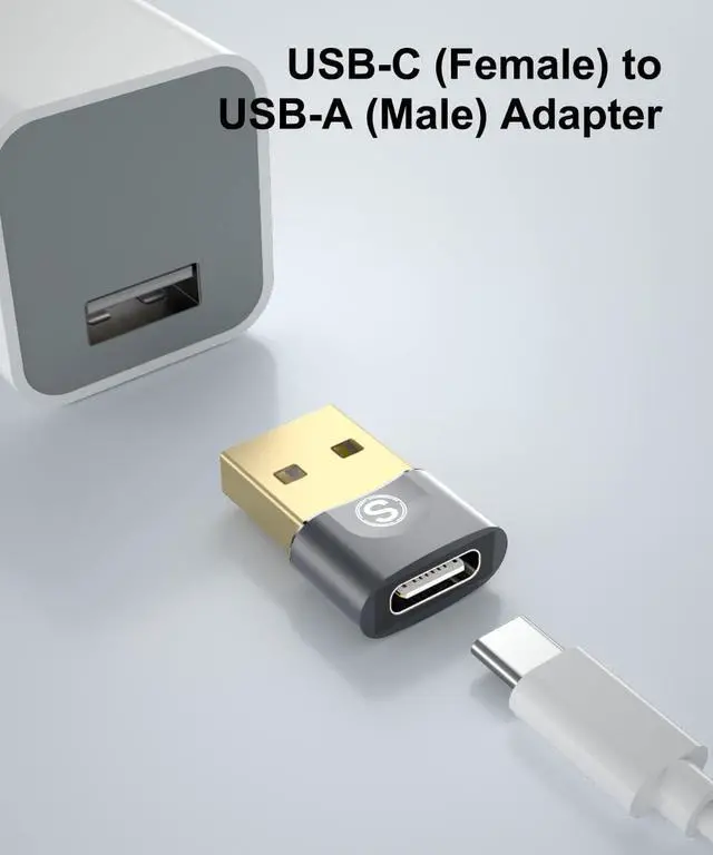 Port ConversionThis is a USB-C female to USB-A Male adapter. By inserting the adapter into an available standard USB port, it can become a USB-C port.(Only for charging or data transfer)