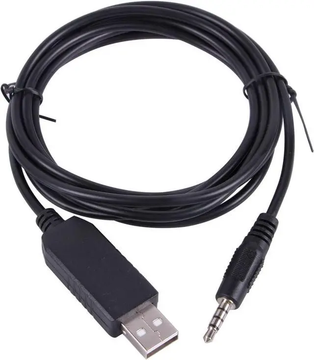 3.5mm 4P audio jack male PL2303TA + ZT232 chip PC COM RS232 standard signals, not TTL Standard Pinout: Tip 1-RX, Ring 2 -TX, Ring 3-VCC, Sleeve-GND TX is match with RX of device, RX is match with TX of device