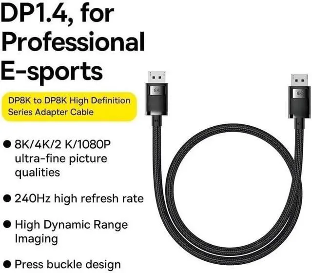 1. ** Resolution**: Our 8K Displayport Cable supports an impressive resolution of 8K@60Hz and 4K at refresh rates of up to 120/144Hz, making it the ideal choice for gamers and professionals seeking stunning video quality through a male to male extension cord.