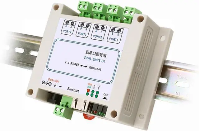 It has 4 RS485 interfaces; 1 10M/100M adaptive Ethernet interface; DC9~36V wide-voltage power supply.