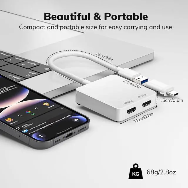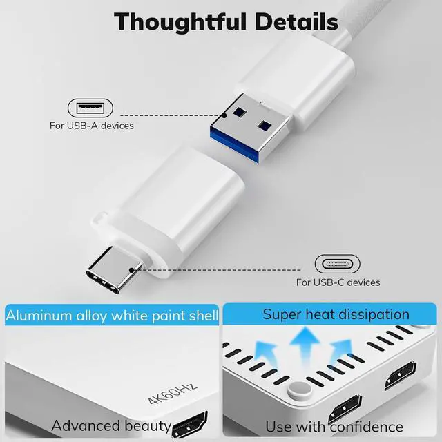 DUAL INPUT PORTSConnect via USB-C (Thunderbolt 3/4) or USB 3.0 Type-A no external power required. Seamlessly switch between modern and legacy devices.