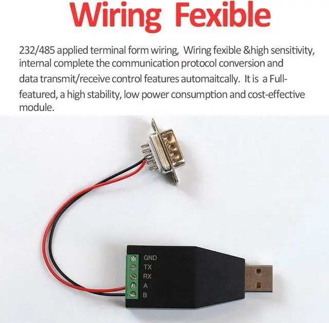 Baud rate:300bps-128000bps Product Name: USB-232/485 Converter Power supply: USB direct power without external power supply, stable performance System: WIN7/8/9/10, OS 8.6 Interface: 5pin terminal Wiring