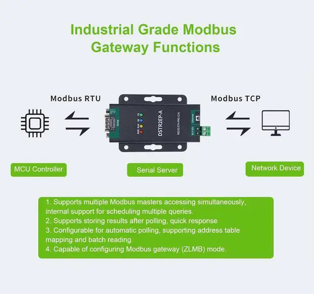 Modbus Gateway: Supports mode, storage mode, pre configured table (ZLMB) mode; supports to RTU/ASCII