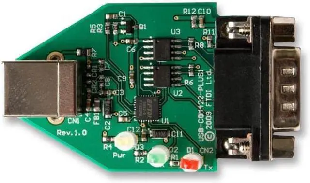 Utilizes the FT232R chip for reliable and efficient serial communication, ensuring high data transfer rates.