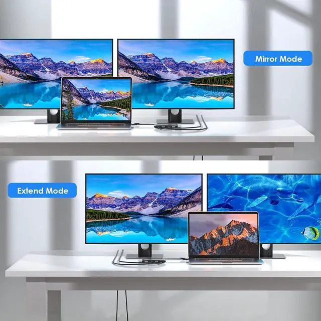 Double Displays Support: Connect double 4K displays at 60Hz for breathtaking clarity and clear visuals, enhancing your productivity and making multitasking a breeze.