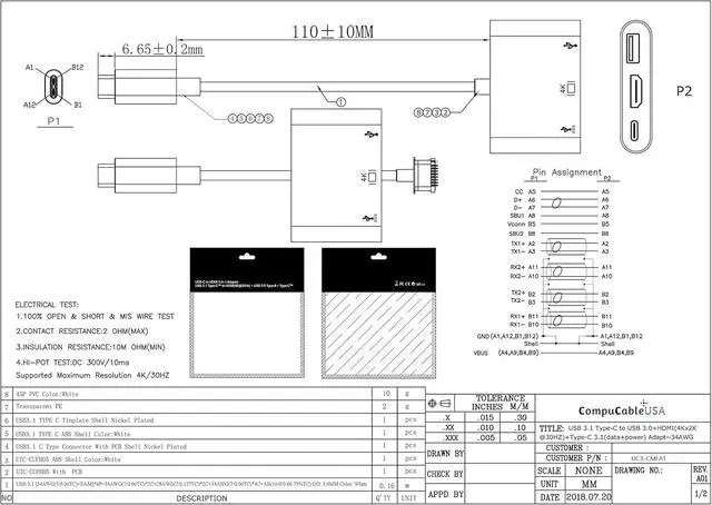 3-in-1 USB-C to HDMI AdapterConnect A : USB 3.1 Type C Male. Connect B : USB 3.0 Type A Female / HDMI Female / Type C Female. USB3.1 Type-C to HDMI / USB-C/ USB 3.0 Multiport Adapter with Small Size, Easy to Carry Around in Pocket. Convenient for Home-Theater Entertainment, Office, Presentation, Exhibition, Teaching etc. Lightweight, Plug and Play, no Extra Driver is Needed.
