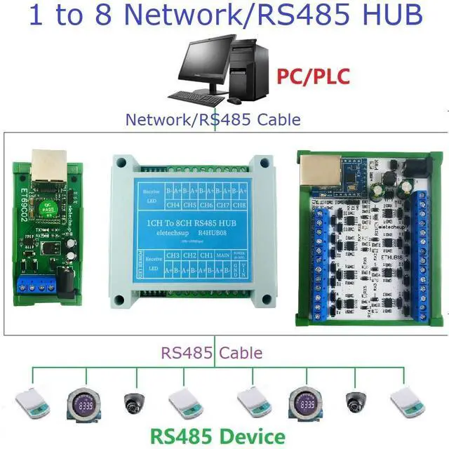 Ethernet to 8 port RS485 Support all RS485 devices of eletechsup