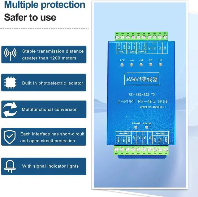 **Versatile Transmission Medium and Asynchronous Operation**: The Multifunctional Data Conversion Module supports twisted pair or shielded wire as its transmission medium and operates in asynchronous half duplex mode. This design ensures reliable data communication over long distances.