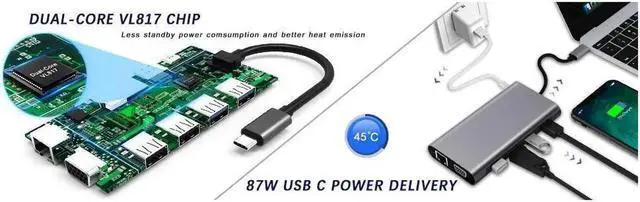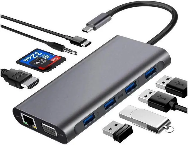 Extensive 11-in-1 USB Type C hub includes Ethernet/RJ-45 Port, Type C PD charging port, 2 USB 3. 0 Ports, 2 USB 2. 0 Ports, 4K HDMI video output. Vega, Micro SD & TF card reader. The SD card slot and the TF card slot can be used on the hub simultaneous. Mic/Audio port in extremely compact and sleek design.