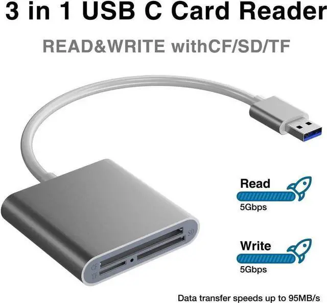 It is ideal for CF / TF / Mirco SD/ SD / MD / MMC / SDHC / SDXC using in your PCs. Work well on Apple MacBook, iMac, Google Chromebook, Microsoft Surface, etc. SuperSpeed USB 3.0 devices support transfer rates up to 5 Gbps. Backward compatible with USB 2.0.