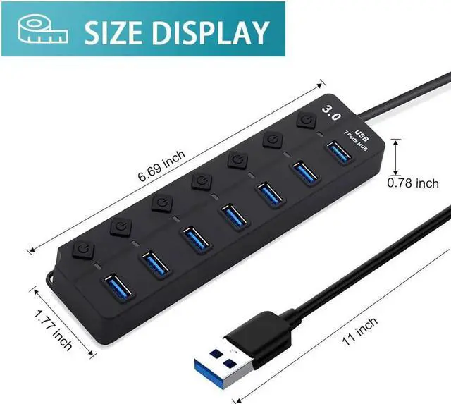USB Hub, Expand your single USB into 7 Ports 3.0
