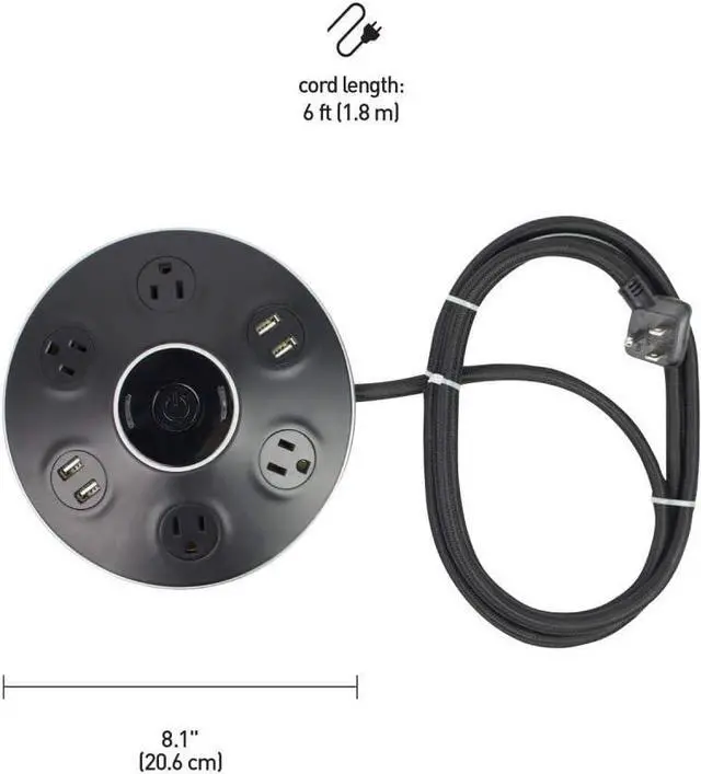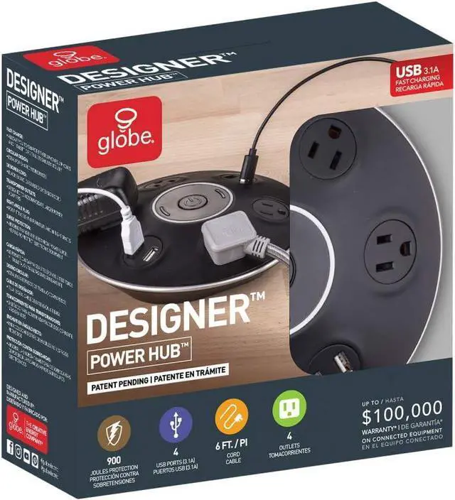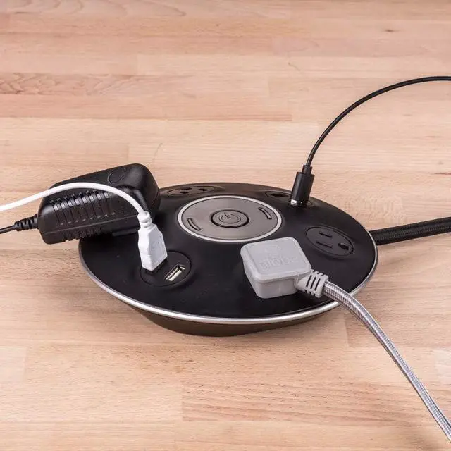 THE ORIGINAL DESIGNER SERIES: add a decorative element to your workspace with Globe Electric' s designer series power hub with a black fabric cord and black finish casing. Patent pending.