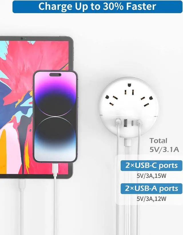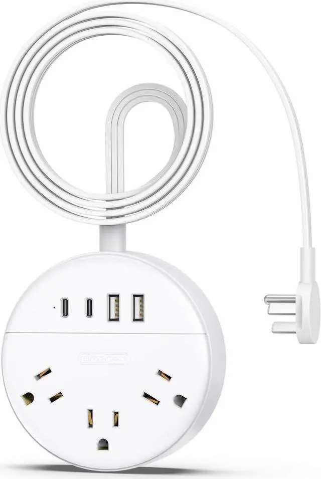 7-IN-1 Extension Cord with Multiple Outlet & USB C PortsFlat Extension Cord could turn 1 socket into 4 outlets with 4 USB Ports (2 USB C ports), which could charge up to 7 devices at the same time. 2 USB ports and 2 USB C ports meet all the needs. USB ports would charge your cellphone, laptop, tablet, and cameras without a variety of converters, save your space and make your desktop organized.