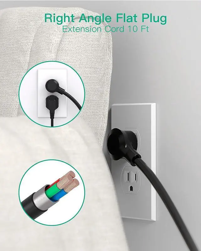 UL approval 5FT CordExtra long extension cord with accredited by UL, which is made of pure copper, that delivers reliable power and holds up to 15A of power. The 5-foot power cord is long enough to reach distant wall outlet sockets.
