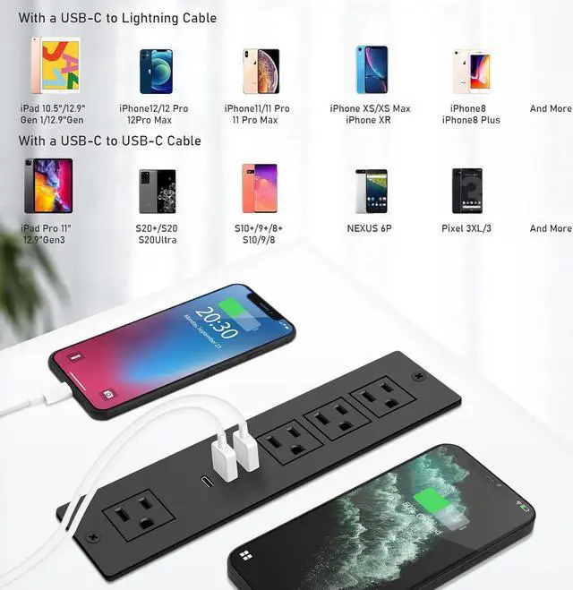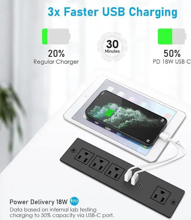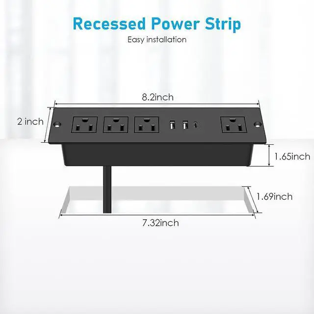 Recessed hidden Power Strip: You can embed the receptacle in any furniture, and all cables will be hidden very well and not touching the floor or table.