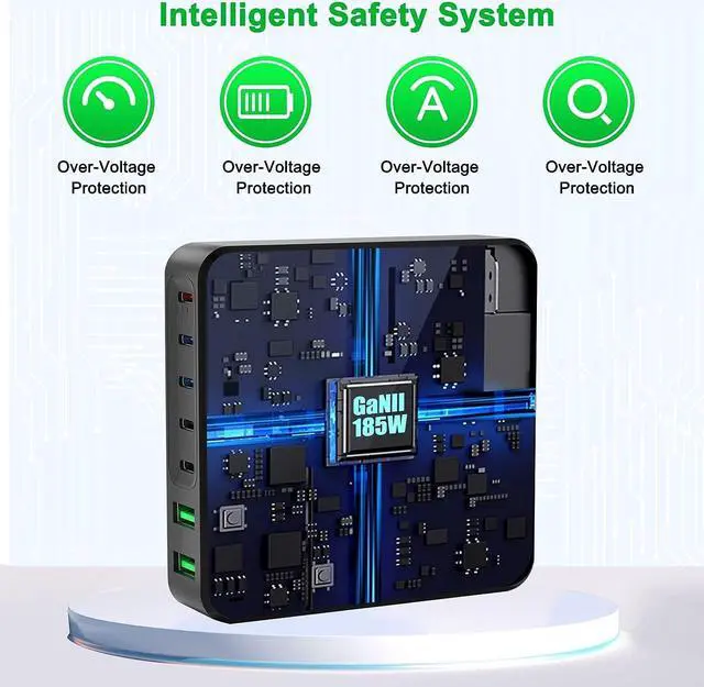 Designed for Ultimate Safety: Just use this USB charger to power up your devices with 100% peace of mind! This GaN desktop charger boasts all-round safety protection like short circuit protection, over temperature protection, over current protection, over voltage protection and more to fully safeguard your devices.