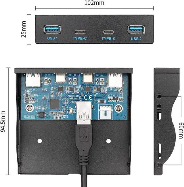 USB-C & USB 3.0 HUB 4 Ports Front Panel to Motherboard 20Pin Connector Cable for 3.5 " Floppy Bay