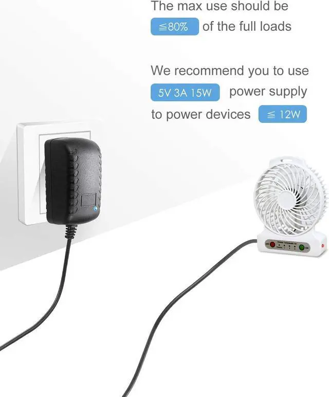Output: 3A max @ 5V DC; Works with device that draws less than 3A, such as 0.5A, 1A, 1.5A, 2A, 2.5A, 2.7A, 3A. Pack of 5.