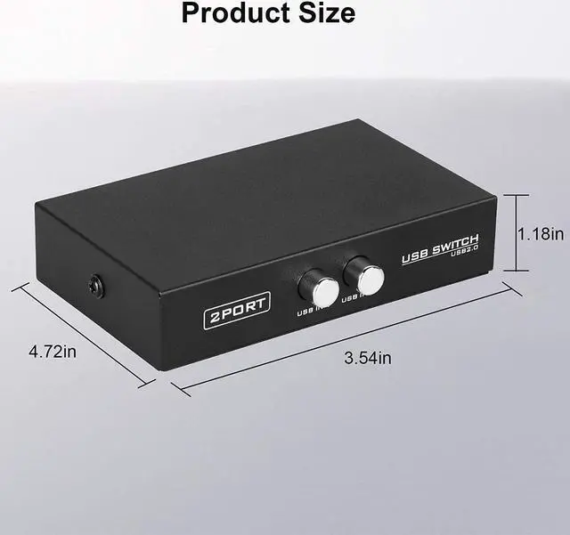 Kit Includes: 1 x 2 Port USB 2.0 Sharing Switch Box, 2 x 5 Feet USB A to B Cable.