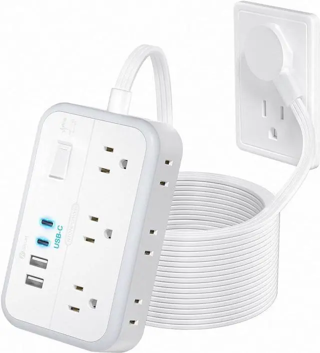 Surge Protection & Overload Protection- The surge protector with overload protection protects your electrical appliances from lighting, surges, or spikes. The minimum energy-absorbing capacity of 1080 Joules. The flat extension cord with built-in multiple security modules safeguards your electronic devices from overload and over-current/over-charge/short circuit/over-heated.