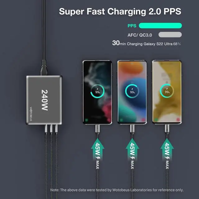 [USBC Rapid Charge] All USB C ports are compatible with Power Delivery PD 3.0, Qualcomm Quick Charge QC5 and Super Fast Charging 2.0 protocol (PPS 45W/25W).