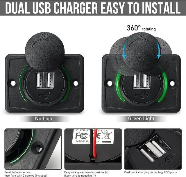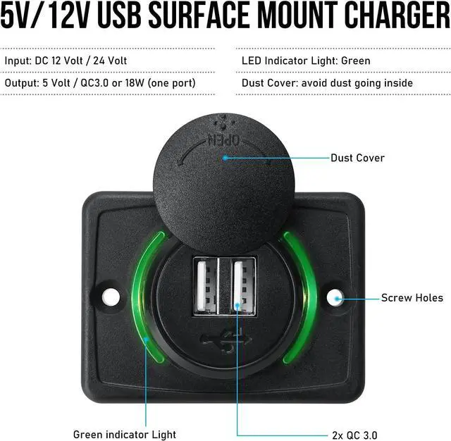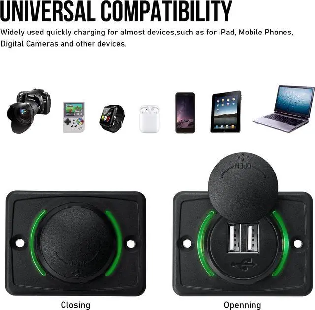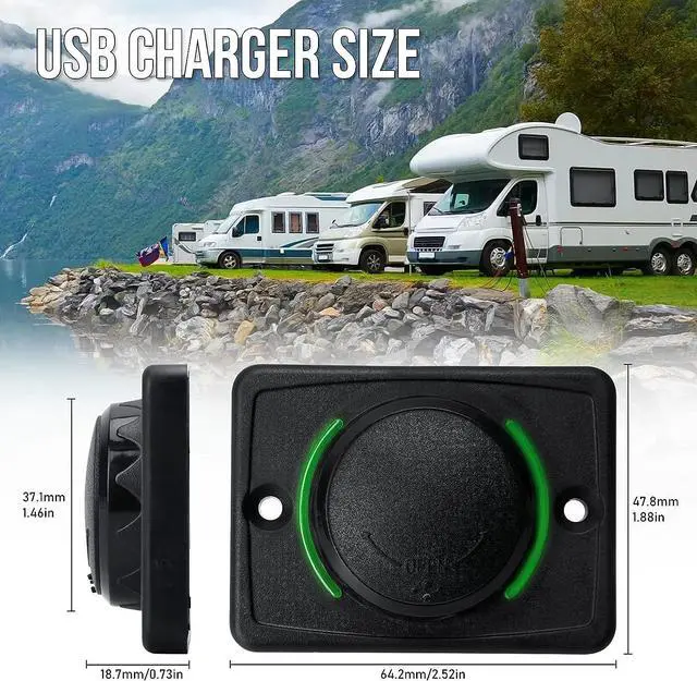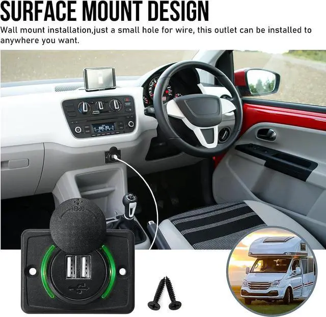Wide Application: 12V RV USB Charger for DC 12V-24V car truck marine boat bus ATV RV etc. Suitable for all USB devices such as phone, Tablets, Camera etc.