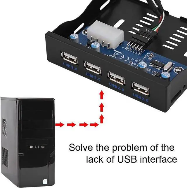 PLUG & PLAY- Plug and play, don't need the power supply. Convert an unused 3.5" floppy drive space into 4 USB 2.0 interface.