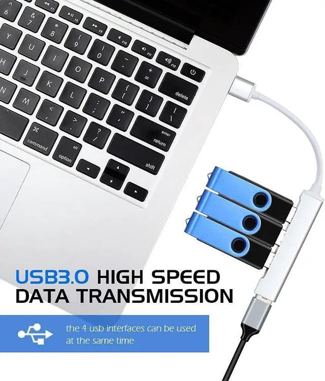 Easy Expansion: 4-in-1 design, easily convert a C-type port into four USB ports, one USB 3.0 and three USB 2.0 ports. You can easily connect USB-A devices (such as USB flash drives, mice, keyboards, game controllers, etc. ) to your laptop, supporting OTG. Let you use without restraint.