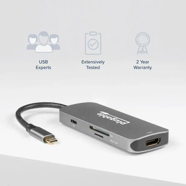 Optimized through extensive testing and years of product development, the multiport adapter was designed by Plugable to fix the problems most commonly mentioned by real customers. Building on the latest technology, the USB-C 7-in-1 hub provides a more reliable DisplayPort over USB-C connection, consistency in port functionality, less risk of overdrawing power, and protecting the laptop when using pass-through charging.