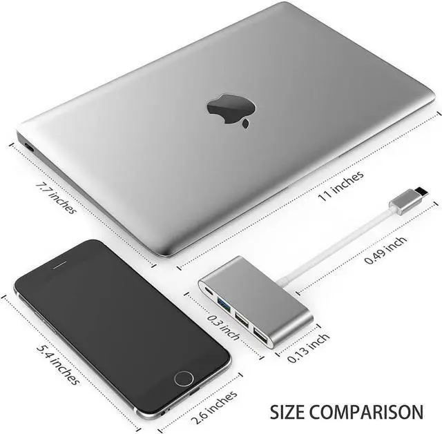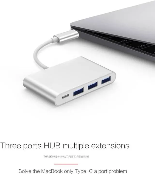 • 4-IN-1 USB HUB: Contains one USB Type-C, 3 USB3.0 ports, connected with an output Type-C port, providing high data transfer speed up to 5 Gbp / s; lightweight and appropriate size to carry out in your laptop bag when traveling