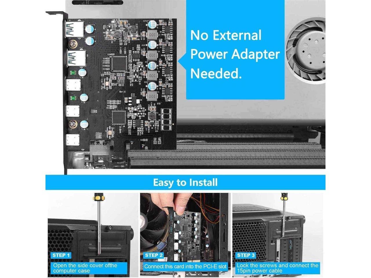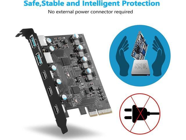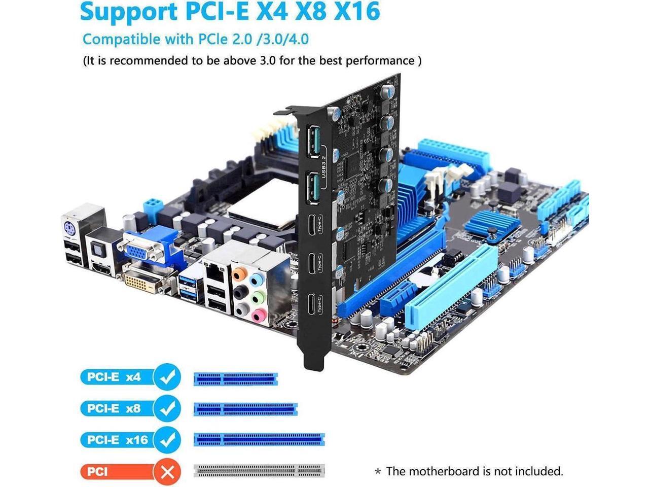 - USB3.2 PCIe Card upgrades your desktop computer to 5 USB 3.2 ports (3x USB C,2x USB A) via a PCI Express x1 slot.Solve the problem of fewer USB ports inside the computer host, allowing more USB data devices to be connected to your computer system