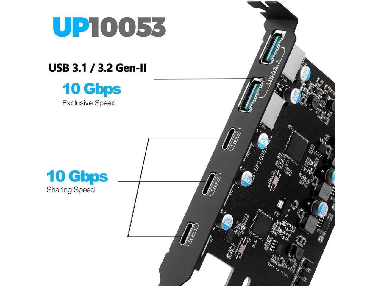 10Gbps PCIe to USB3.2 Gen 2 (3X USB C - 2X USB A) Expansion Card,PCI Express Internal USB 3.2 Hub Converter for Desktop PCS Riser Card
