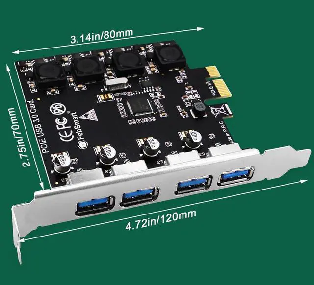 Pcie USB Card Pcie USB 3.0, 4 Port Pcie Expansion Card 4 Ports USB 3.0 5Gbps High Speed Transmission Stable Power USB 3.0 Front Expansion Card