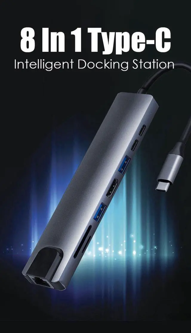 USB 8-in-1 Type C to USB3.0/USB2.0 HUB + SD/TF Card Reader + 87W PD Charging + Type-C Data Port + 4K HDMI + RJ45 100M Network Card for Portable for Mac Pro, and More