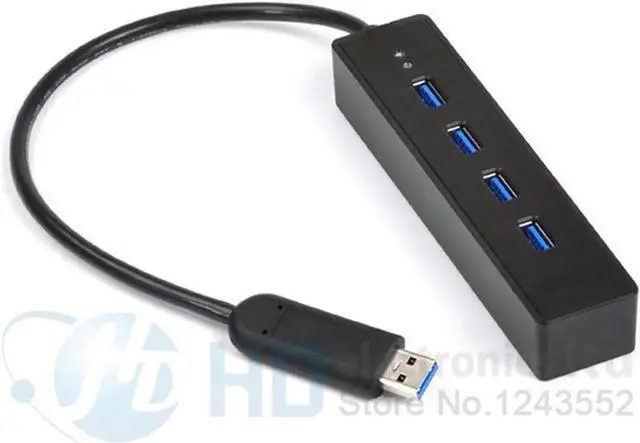 • Aomoproing Hot Portable Super Speed 4 ports USB 3.0 Hub LED Indicator 5Gbps Hot-swap Black