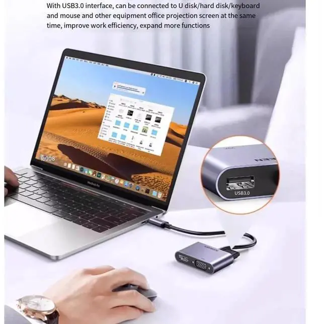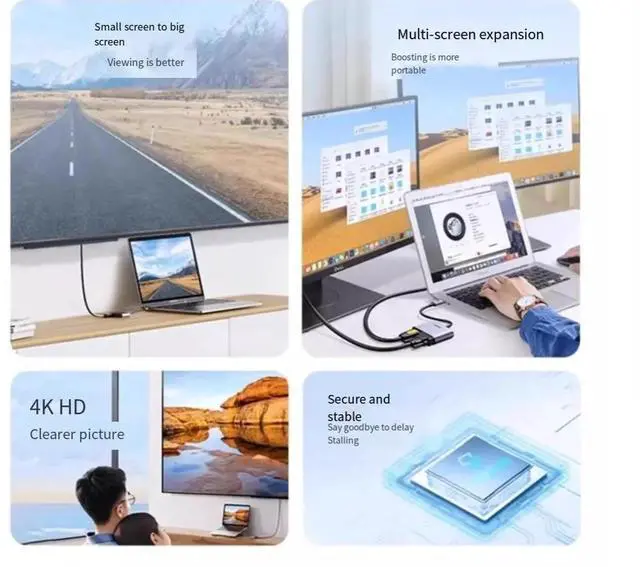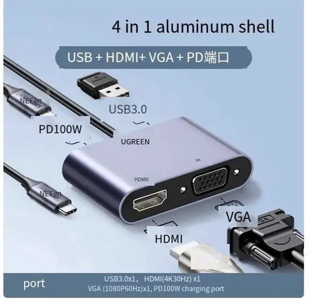4-in-1 Typec to HDMI+VGA+PD+USB3.0 Extension converter Adapter External laptop Mobile iPad tablet connected to TV projector usb multi-function projection displ