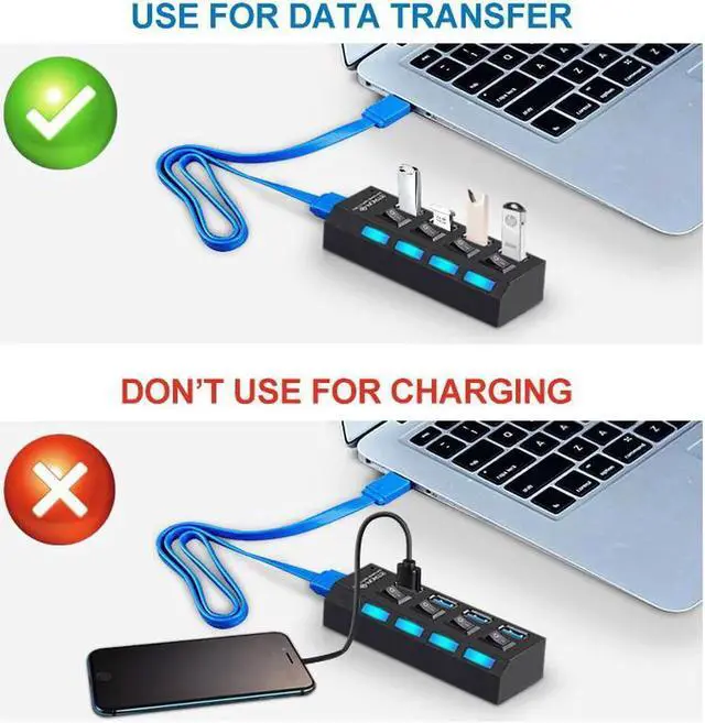 Do not used for charging, it is used for offering more usb ports to transfer file.