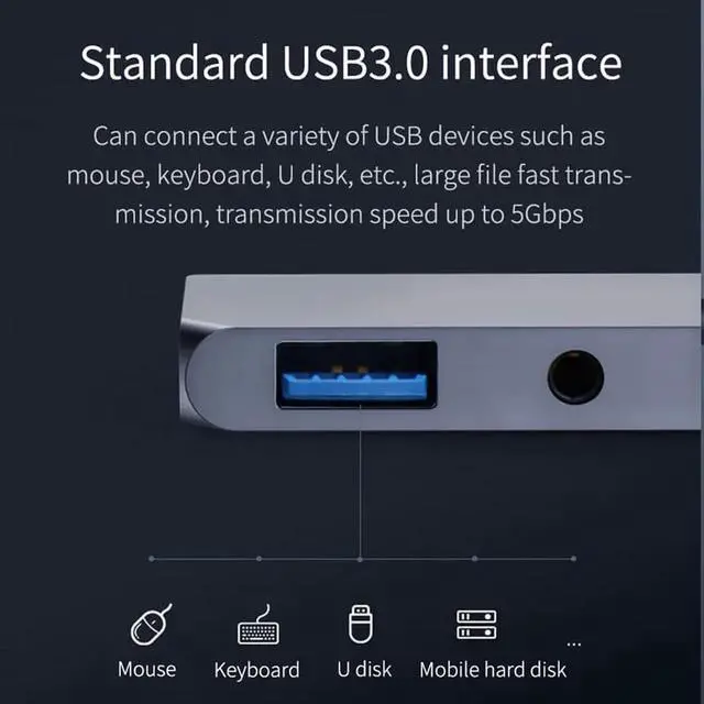 indispensable USB interface, Standard USB 3.0 interface, transmission speed up to 5Gbps, 1G file transfer in 5 seconds.