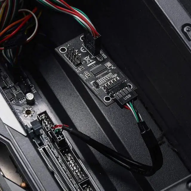One side connects to motherboard 9pin port, the other side splits to 2x 9pin.