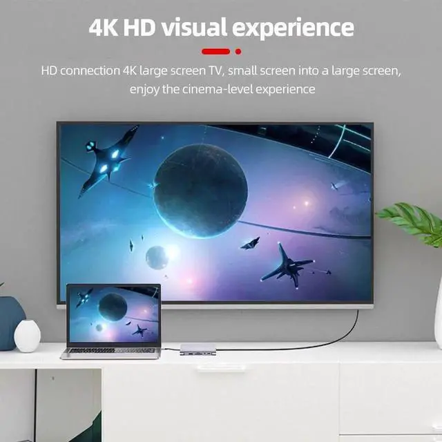 Output interface: USB 3.0 x 4/RJ45 100mbps x 1/VGA x 1/4k HDMI-compatible x 1/87W PD x 1/ 3.5 mm x 1/TF port/SD port.