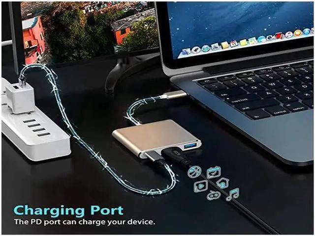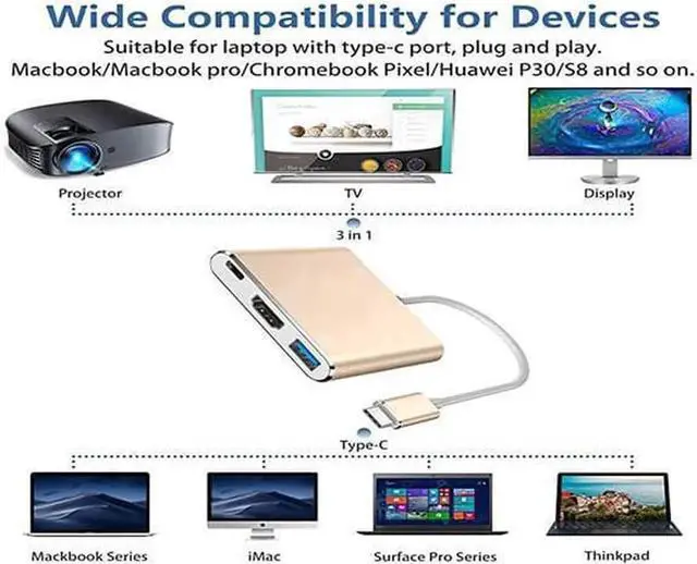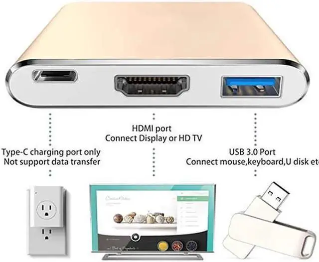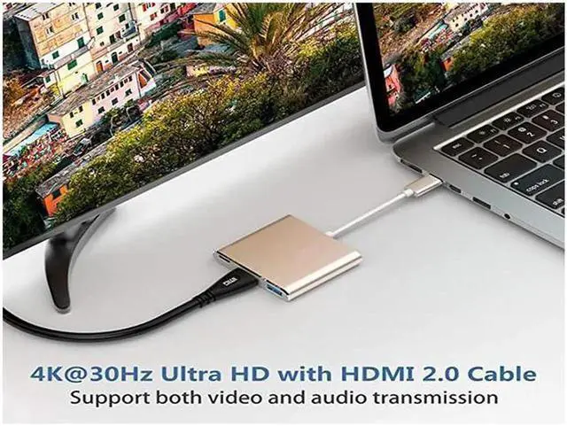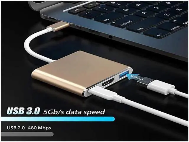 HDMI Adapter: USB Type-C to HDMI / USB-C/ USB 3.0 Multiport Adapter with small size & lightweight, easy to carry around in pocket.