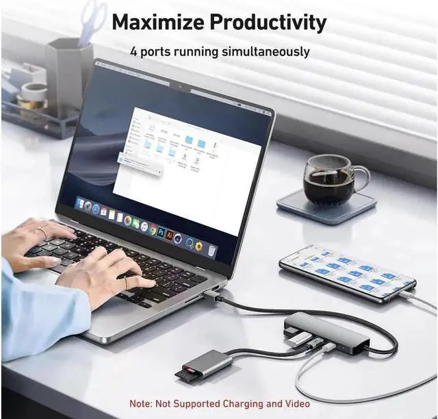 Hub: With its sleek and compact design, and superior functionality, effortlessly expands one USB port into 4 high-speed USB 3.2 ports, supporting simultaneous connection of 4 USB devices. Frees up USB slots on your computer, allowing for more convenient connection of additional devices.