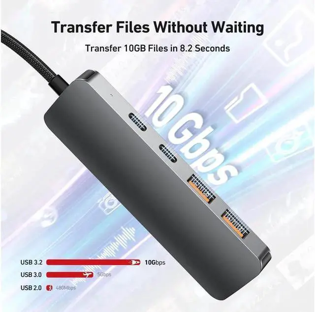10Gbps Superspeed Transfer: USB 3.2 ports support data transfer speeds of up to 10Gbps, 100% faster than USB 3.0 hubs. Move or copy large amounts of data/photos/HD movies in seconds, stable connection, fast transfer of large files.