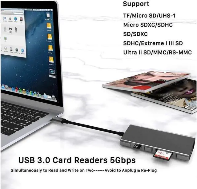4K HDMI Port: Mirror or extend your screen with USB C Hub HDMI port and directly stream video to HDTV, monitor or projector. Resolution support stream 4K@30HZ, 1080P@60HZ, 1080I@60HZ and 720P@60HZ video