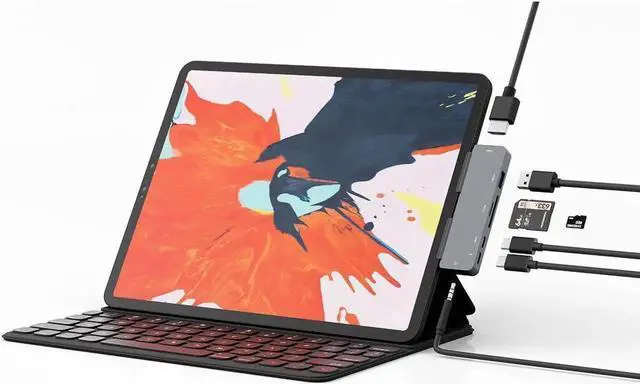 iPad Pro USB C Hub, iPad Pro 2018 2019 2020 12.9/11 Inch Adapter, 7-in-1 iPad Pro Dongle with 4K HDMI, USB-C PD Charging&Data, SD/Micro Card Reader, USB 3.0 & 3.5mm Headphone Jack