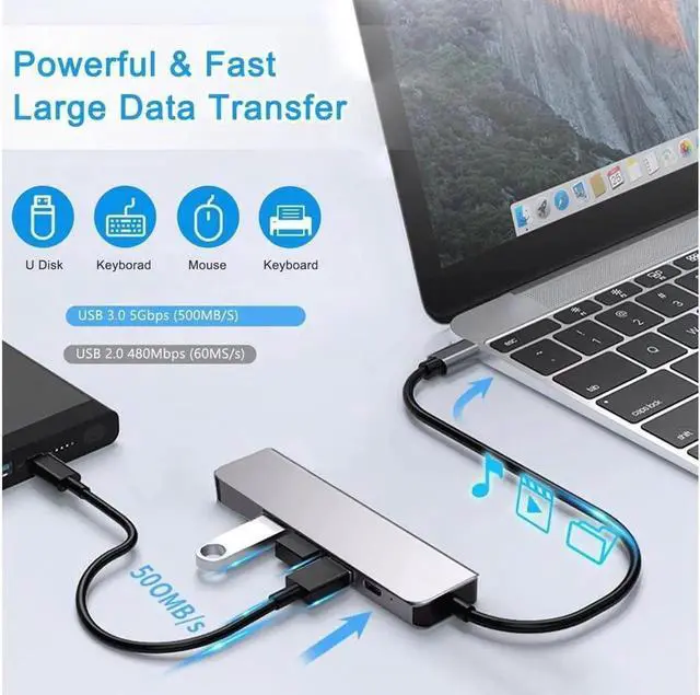 USB C Hub: USB C to HDMI multiport adapter equipped with 1*4K HDMI port, 1*USB 3.0 ports, 2*USB 2.0 ports, 1* USB-C 100W PD, Works well with most USB-C laptop, MacBook Pro/Air and other USB-C port devices.