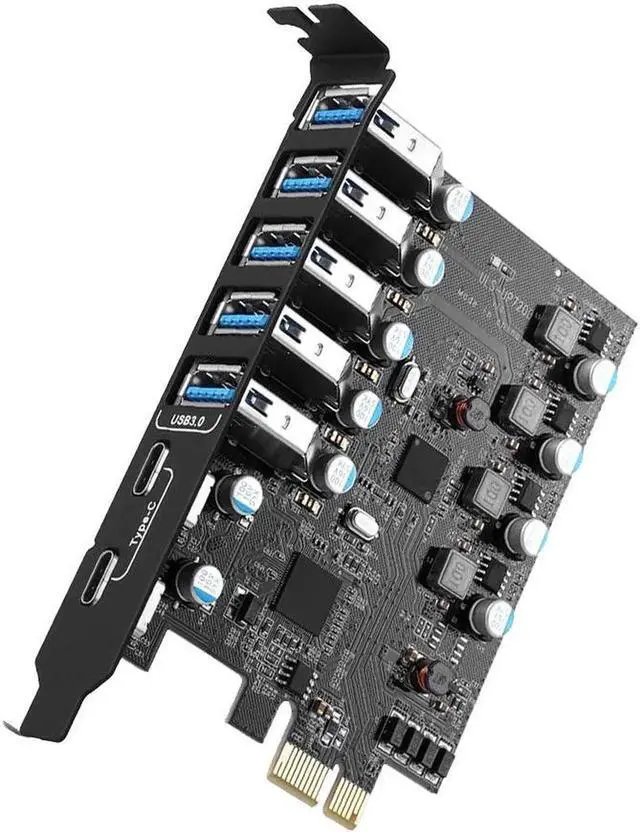 USB PCIe Card upgrades your desktop computer to 7 USB 3.0 ports (2x USB C, 5x USB A) via a PCI Express x1 slot. Solve the problem of fewer USB ports inside the computer host, allowing more USB data devices to be connected to your computer system