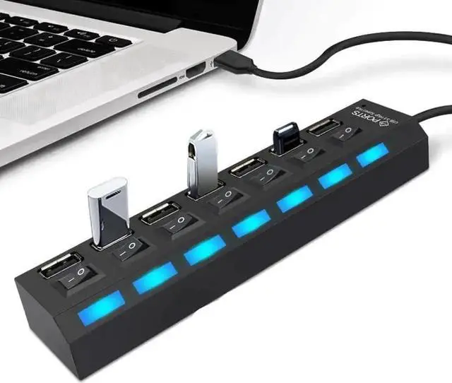7 Ports High Speed USB Hub 480 Mbps USB 2.0 Hub On/Off Switch Hub USB Splitter For PC Laptop Computer Peripherals Accessories