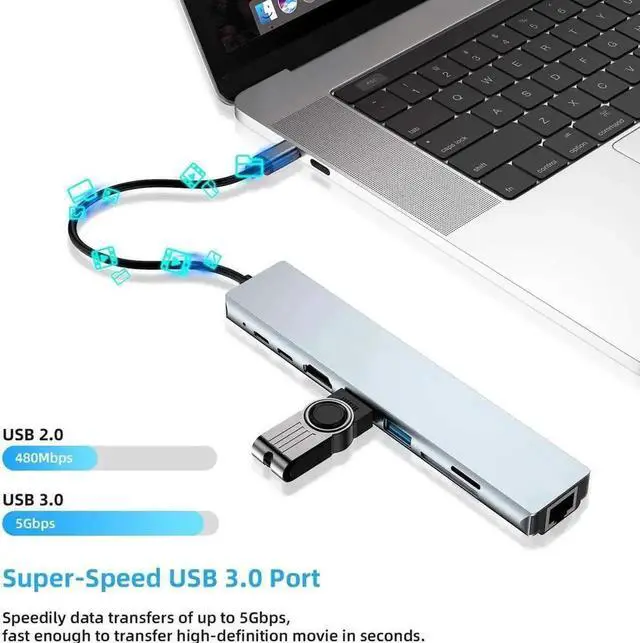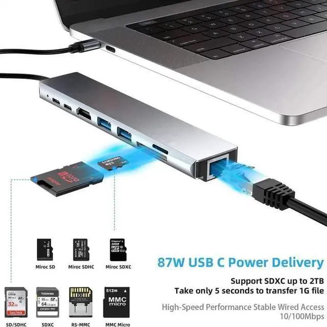 USB C Hub, 8-In-1 Type C Hub with Ethernet Port, 4K USB C to HDMI, 2 USB 3.0 Ports, SD/TF Card Reader, USB-C Power Delivery, Type-C Data Port Portable for Mac Pro and Other Type C Laptops