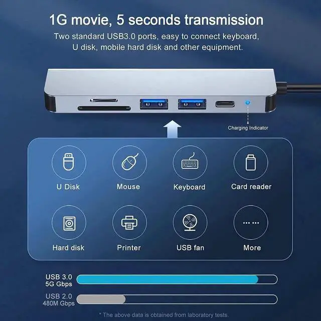 USB C Hub 6 in 1 Aluminum USB C Adapter with 2 USB 3.0 Ports, 4K HDMI, 87W Pd Charging for iPad Pro/MacBook/Type C Devices, TF/SD Card Reader (Gray)